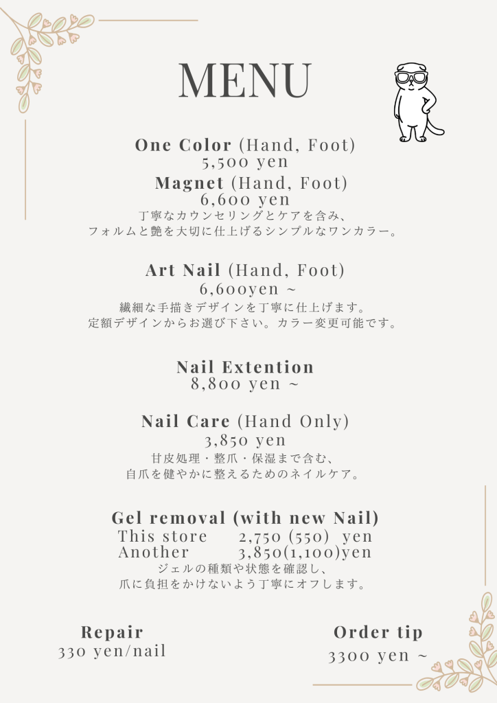 下記「RESERVE」よりご希望の日時とメニューをお知らせください。